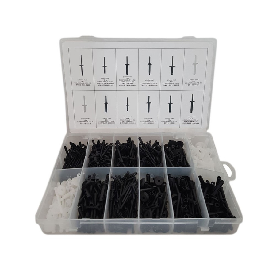 235-piece plastic pop rivet assortment.
