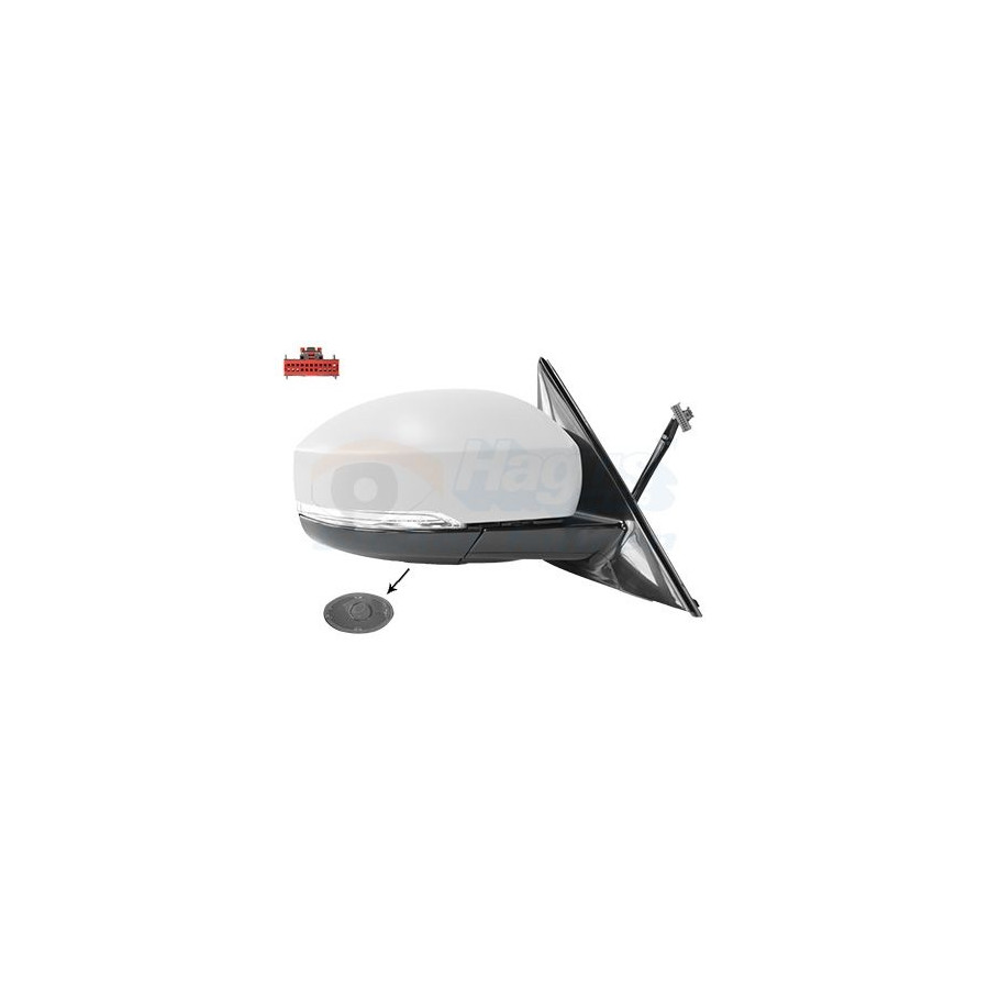 Fitting Position Right (passenger side) Surface Primed Outer/Inner Mirror Complete Mirror Spherical For electric mirror adjustment Electronically foldable Heatable With memory Performance For vehicles with lane assist Paired article numbers 0246827 Number of connectors 1 Quality Hagus Light Function With indicator Light Distribution Surface Lighting Number of used contacts 14 Guarantee 2 years -