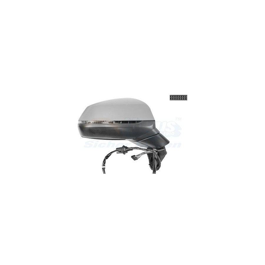Fitting Position Right (passenger side) Surface Primed Outer/Inner Mirror Complete Mirror Spherical For electric mirror adjustment Electronically foldable Heatable With memory Performance For vehicles without lane change assistant Quality Hagus Outer/Inner Mirror Without automatic dimming Prepared for automatic dimming Light Function With indicator Guarantee 2 years Similar products of other manufacturers