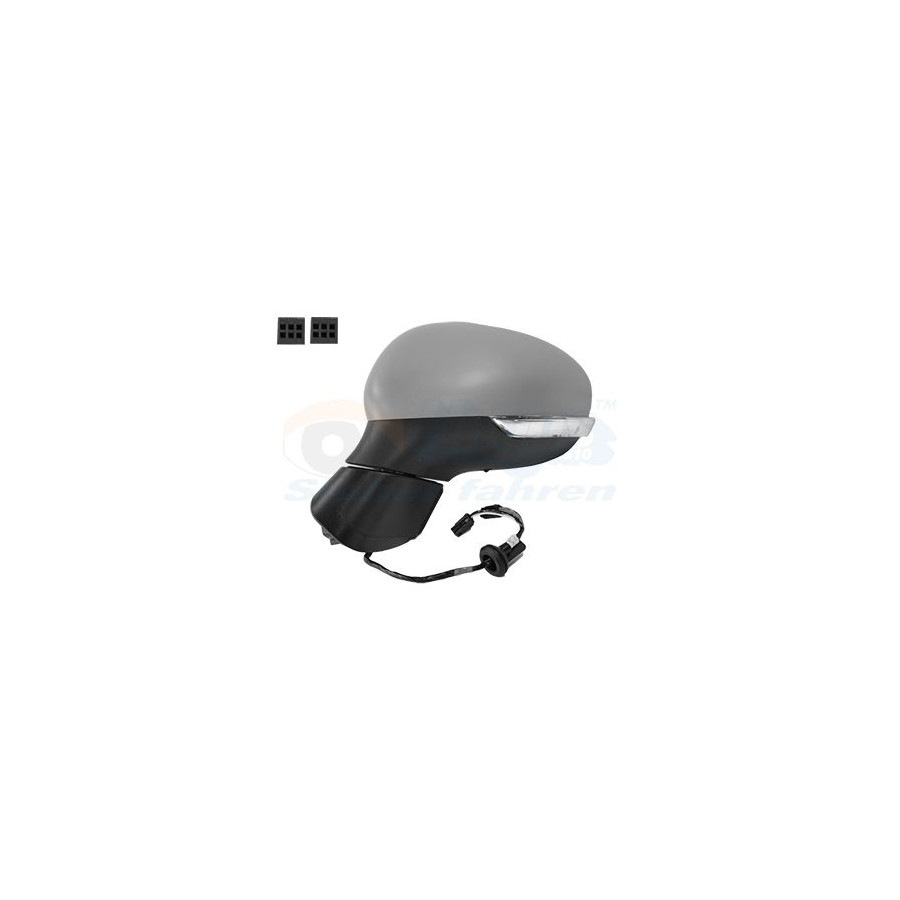 Fitting Position Left (passenger side) Surface Primed Outer/Inner Mirror Complete Mirror Spherical For electric mirror adjustment Electronically foldable Heatable Paired article numbers 1704818 Number of connectors 2 Quality Hagus Light Function With indicator Number of used contacts 8 Guarantee 2 years Number of contacts 12 Similar products of other manufacturers