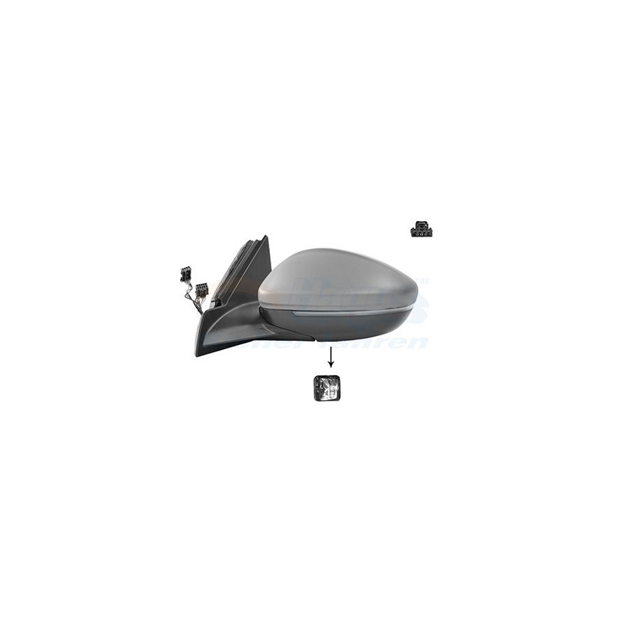 Fitting Position Left (passenger side) Surface Primed Outer/Inner Mirror Complete Mirror Spherical For electric mirror adjustment Heatable Electronically foldable Number of connectors 1 Quality Hagus Light Function With flashing light (LED) Light Distribution Surface Lighting Number of used contacts 10 Guarantee 2 years Number of contacts 10 Similar products of other manufacturers