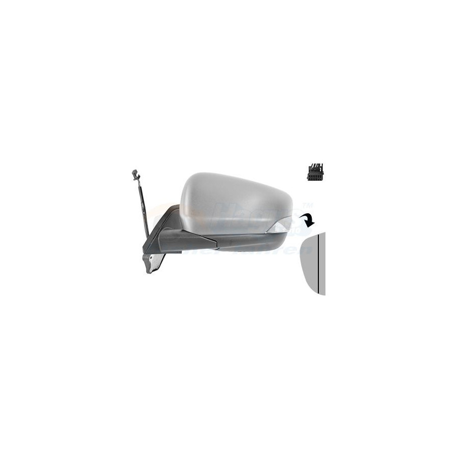 Fitting Position Left (passenger side) Surface Primed Outer/Inner Mirror Complete Mirror For electric mirror adjustment Electronically foldable Heatable Spherical Paired article numbers 4414826 Number of connectors 1 Quality Hagus Number of used contacts 9 Guarantee 2 years Number of contacts 12 -