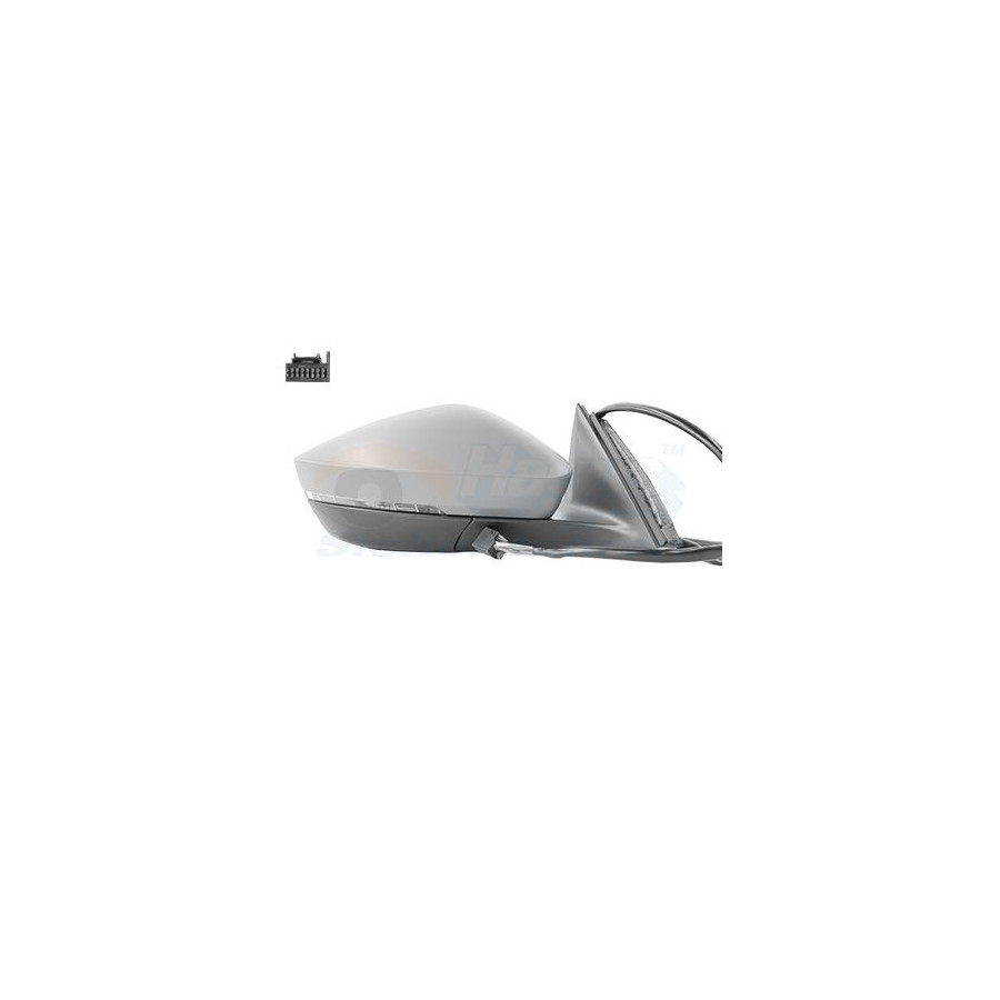 Fitting Position Right (passenger side) Surface Primed Outer/Inner Mirror Complete Mirror Spherical For electric mirror adjustment Heatable Paired article numbers 7638807 Number of connectors 1 Quality Hagus Light Function With flashing light (LED) Number of used contacts 6 Guarantee 2 years Number of contacts 16 Similar products of other manufacturers