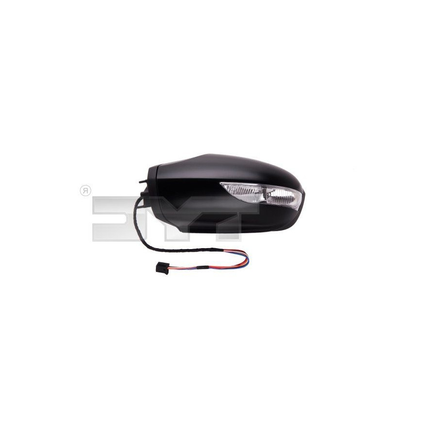 Fitting Position Left (passenger side) Colour Black Surface Primed Outer/Inner Mirror Heatable Electronically foldable Spherical For electric mirror adjustment Light Function With indicator Registration Type ECE tested Guarantee 2 years Similar products of other manufacturers