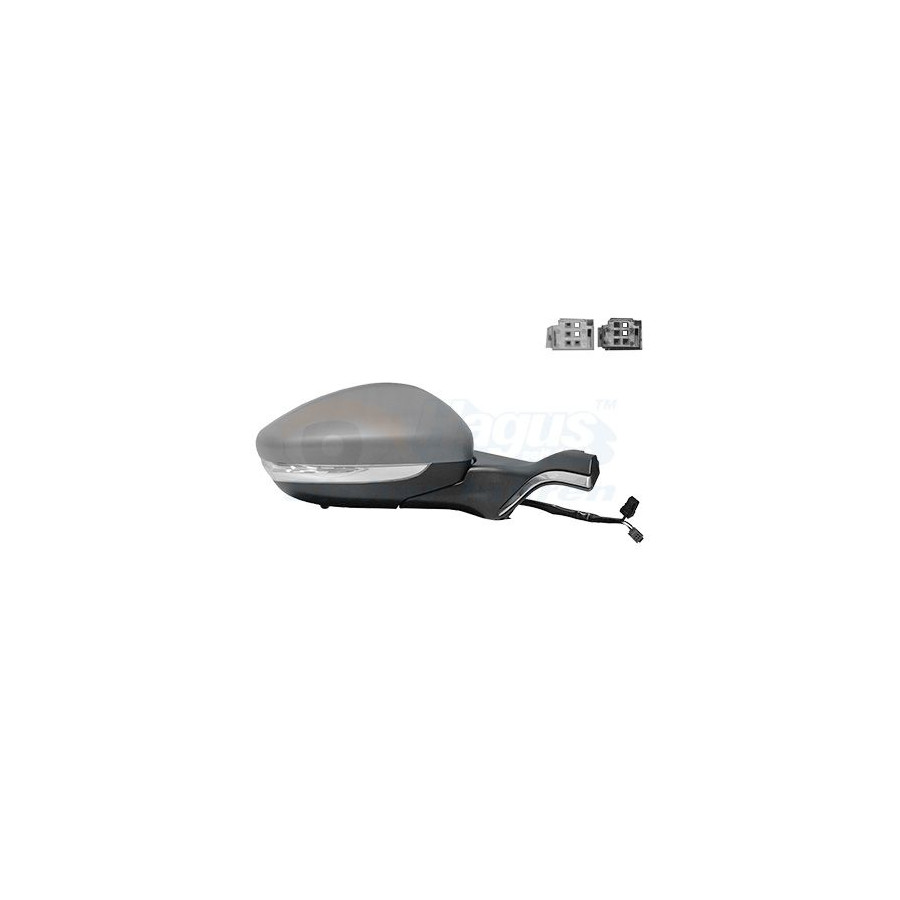 Fitting Position Right (passenger side) Surface Primed Chromed Outer/Inner Mirror Spherical Heatable Complete Mirror With thermo sensor For electric mirror adjustment Paired article numbers 4034805 Number of connectors 2 Quality Hagus Styling With trim strip Light Function With indicator Number of used contacts 9 Guarantee 3 years Indicator colour White Consider image Number of contacts 12 -
