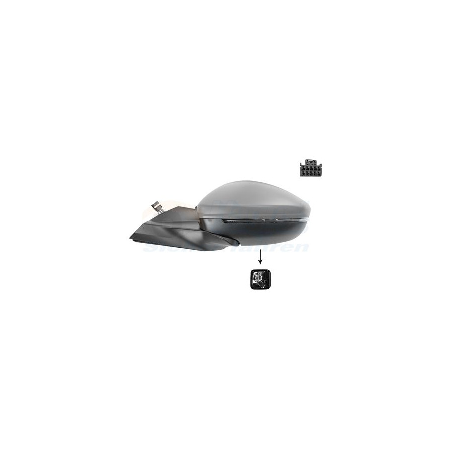 Fitting Position Left (passenger side) Surface Primed Outer/Inner Mirror Complete Mirror Spherical For electric mirror adjustment Electronically foldable Heatable Paired article numbers 4092818 Number of connectors 1 Quality Hagus Light Function With indicator Light Distribution Surface Lighting Number of used contacts 10 Guarantee 2 years Number of contacts 10 Similar products of other manufacturers