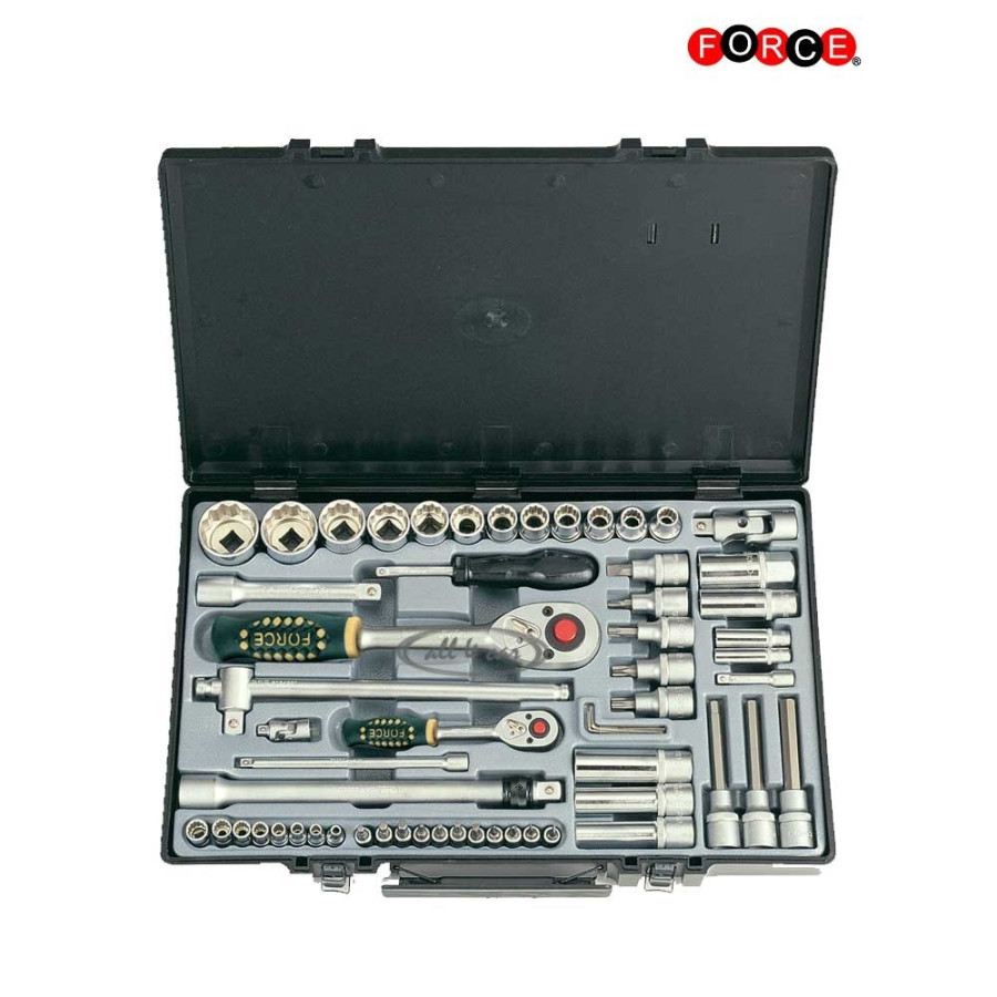 Force combination socket set with 1/4`` & 1/2`` tools.