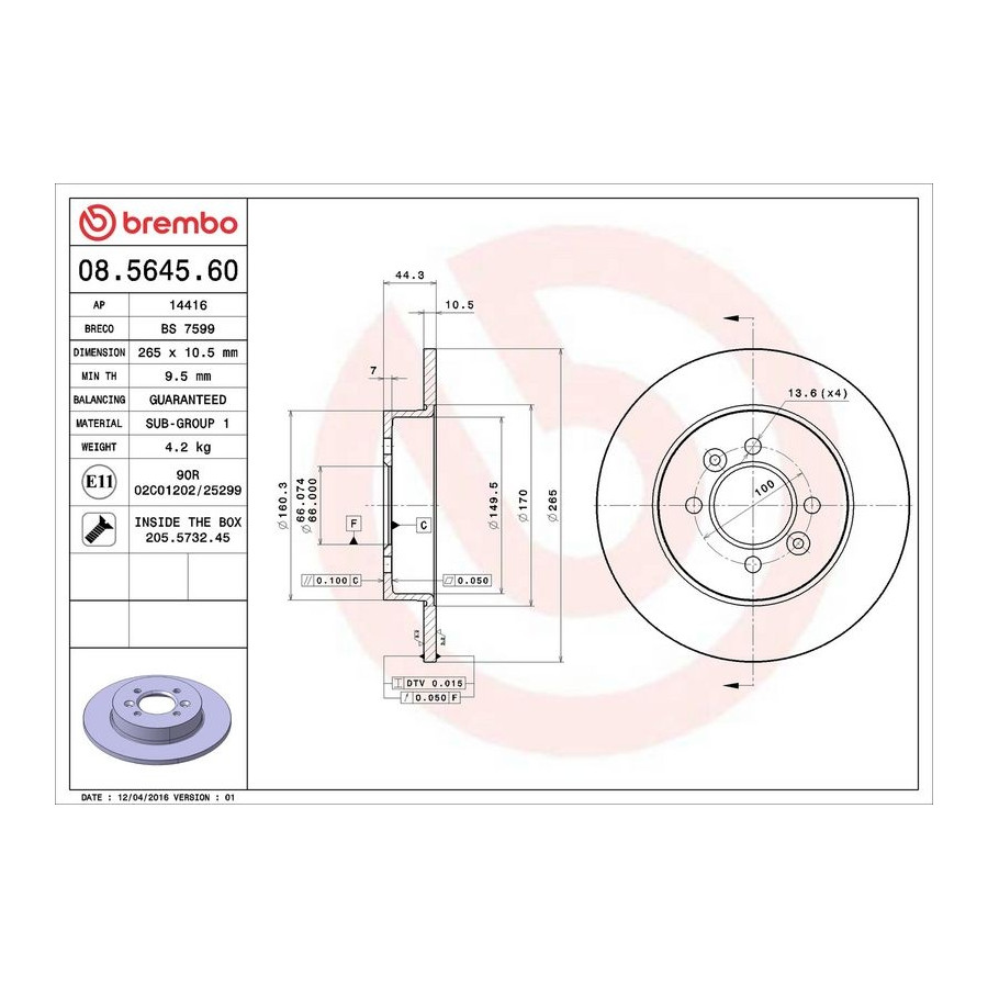 Brake Disc 08.5645.60 Brembo
