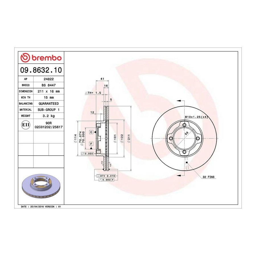 | Brake disc thickness (mm) | 16 |