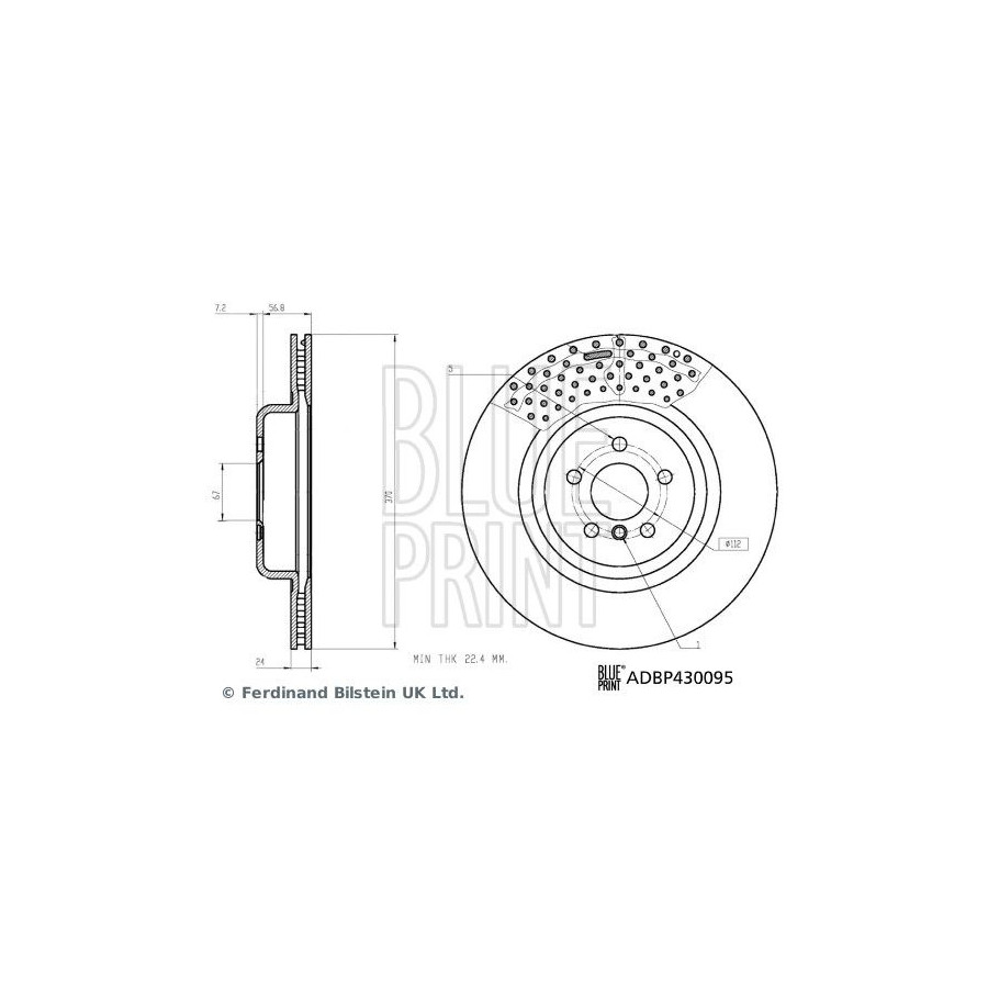 Diameter (mm): 370 Brake disc thickness (mm): 24 Minimum thickness (mm): 22 Height (mm): 61.5 Number of wheel bolts: 5 Brake disc type: Vented Hub diameter 1 [mm]: 75 Insert wheel bolts (mm): 120 Weight ( kg): 10.34 Fitting: Rear