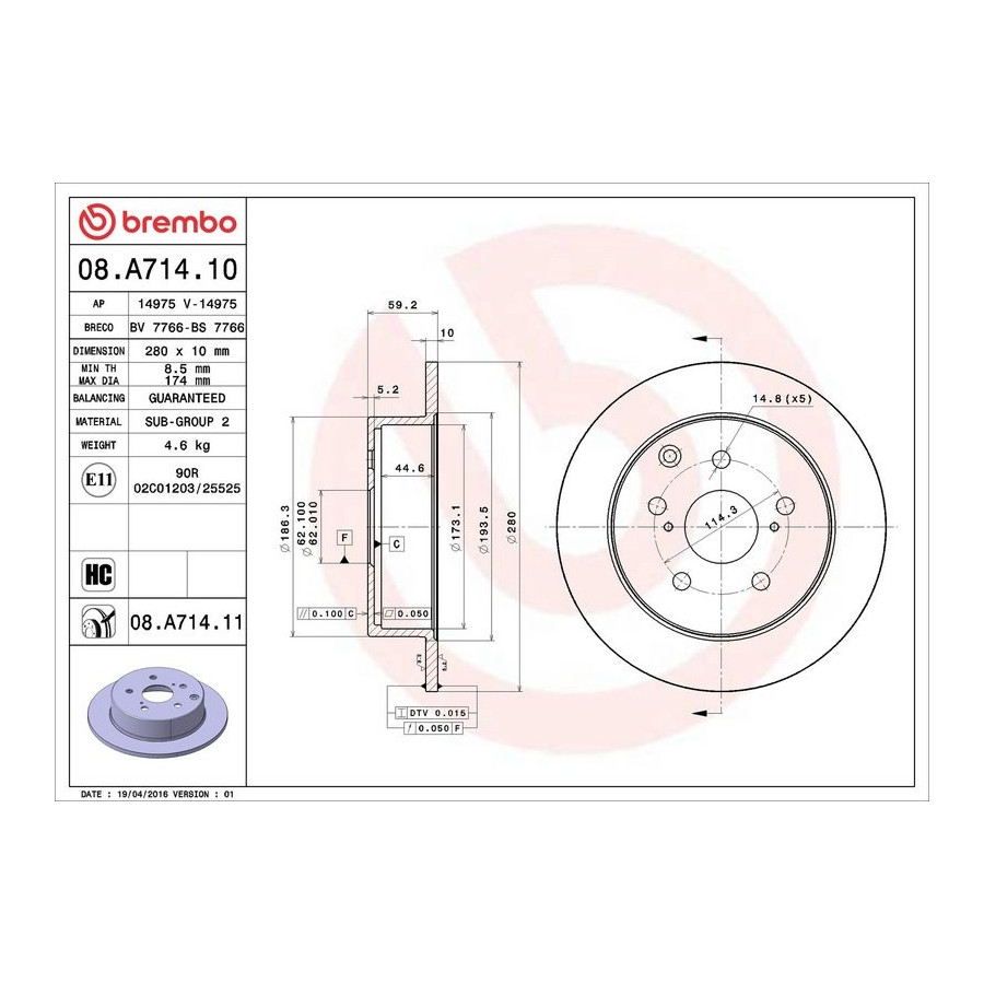 Brake Disc COATED DISC LINE 08.A714.11 Brembo