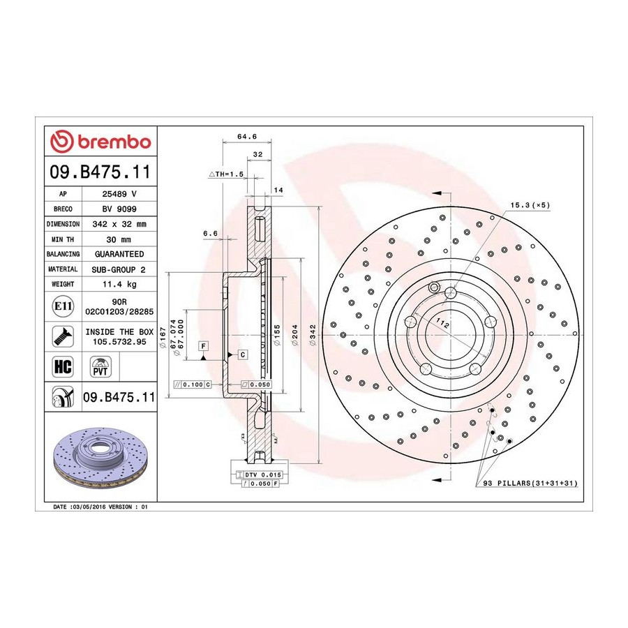 Brembo sport brake discs are cast, finished and tested by Brembo itself, so that exceptional quality can be guaranteed. Every newly produced Brembo brake disc thus has the same exceptional quality as the previous one.