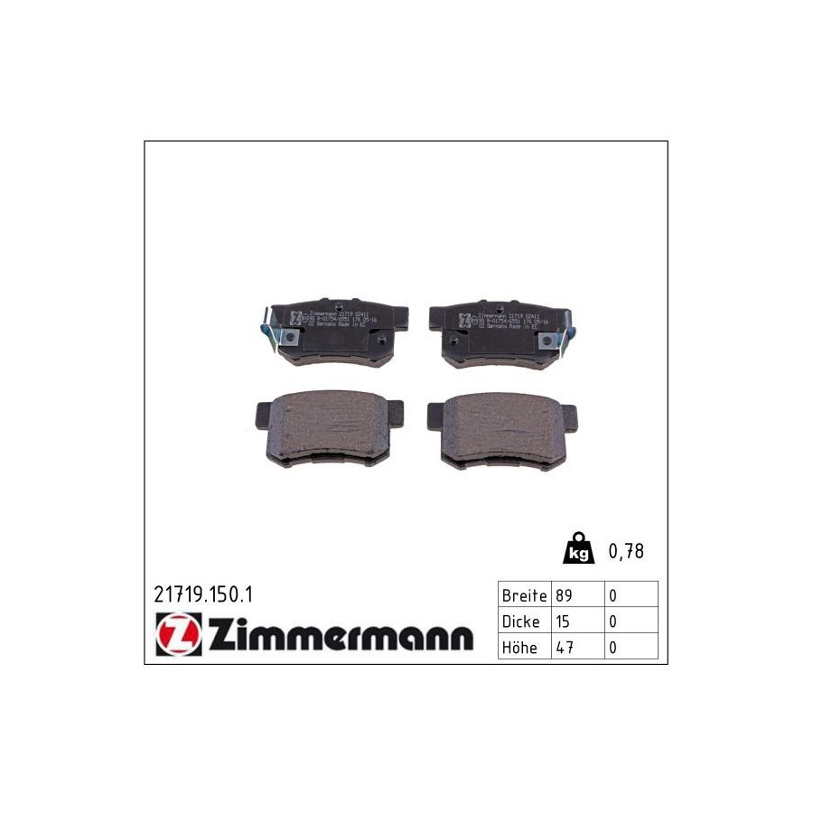 Zimmermann brake pads are specially optimized for your car. This gives you a brake pad set that runs smoothly, provides good braking power, but lasts a long time. The brake pads from Zimmermann are similar to the original brake pads of your car or exceed the specifications.