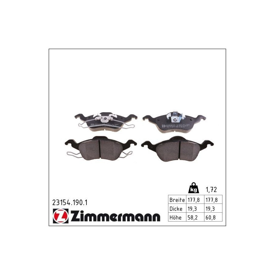 Brake Pad Set, disc brake 23154.190.1 Zimmermann