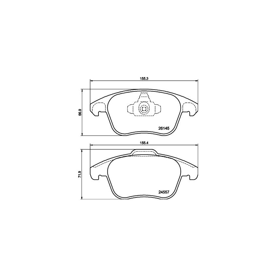 Fitting Position Front Axle braking System ATE Width 1 [mm] 155,3 Width 2 [mm] 155,4 Wear Warning Contact Not prepared for wear warning WVA Number 26145 Guarantee 2 years Thickness 1 [mm] 18,2 Thickness 2 [mm] 19 Assy./disassy. by qualified personnel required! Height 1 [(mm) 66,9 Height 2 (mm) 71,9 Weight [kg] 1,9 Similar products of other manufacturers