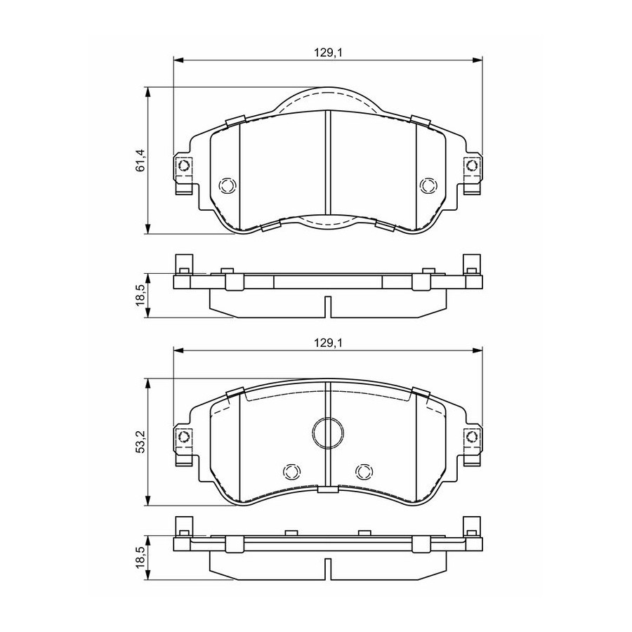 Wear Warning Contact Without wear indicator Content Set (4 brake pads per axle) Material Low-Metallic Supplementary Article/Info 2 With anti-squeak plate Part number of recommended accessories 1 987 474 241 WVA Number 25220 Inspection Tag ECE-R90 Guarantee 2 years Width [mm] 129,1 Thickness [mm] 18,5 Height 1 [(mm) 53,2 Height 2 (mm) 61,4 Product must be determined by vehicle or engine Similar products of other manufacturers