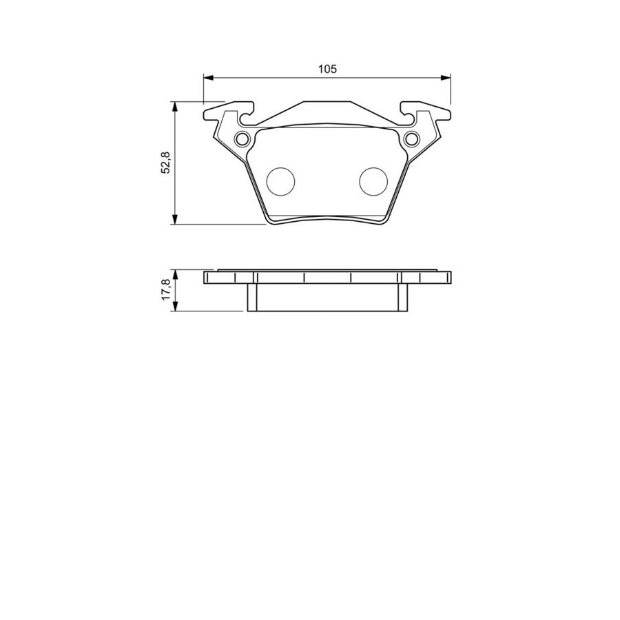 braking System BOSCH Wear Warning Contact Excl. wear warning contact Content Set (4 brake pads per axle) Montage Rear Material Low-Metallic Supplementary Article/Info 2 With anti-squeak plate Part number of recommended accessories 1 987 474 320 WVA Number 23020 Inspection Tag ECE-R90 Guarantee 2 years Height [mm] 53 Width [mm] 105 Thickness [mm] 17 Product must be determined by vehicle or engine Similar products of other manufacturers