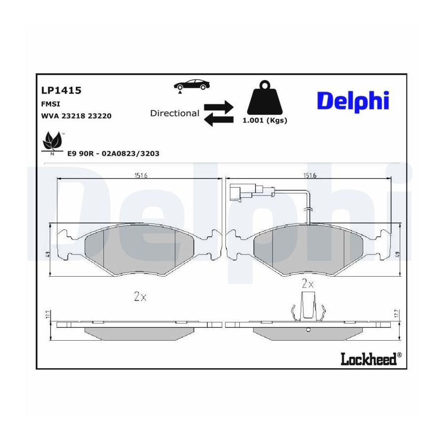 Brake Pad Set, disc brake LP1415 Delphi