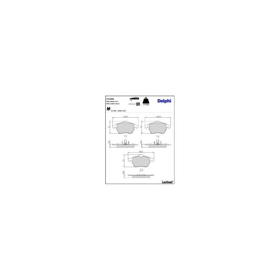 Brake Pad Set, disc brake LP1600 Delphi