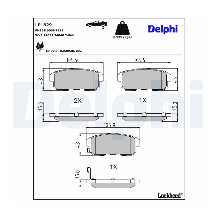 Brake Pad Set, disc brake LP1829 Delphi