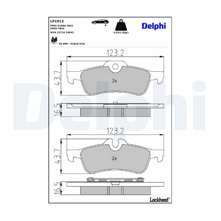 Brake pad set, disc brake LP1912 Delphi