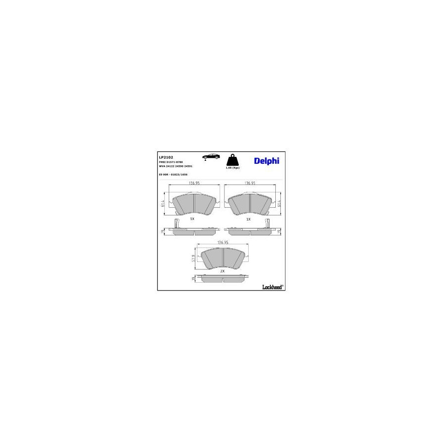 Brake Pad Set, disc brake LP2102 Delphi