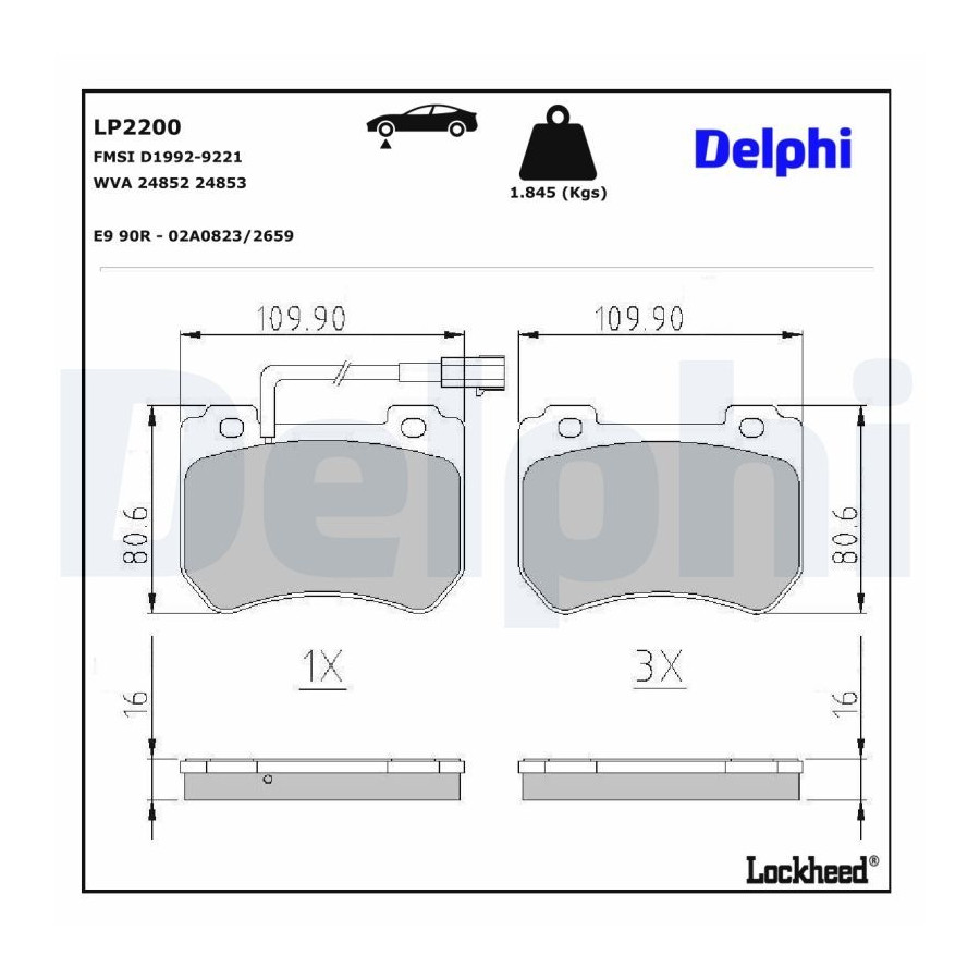 Brake Pad Set, disc brake LP2200 Delphi