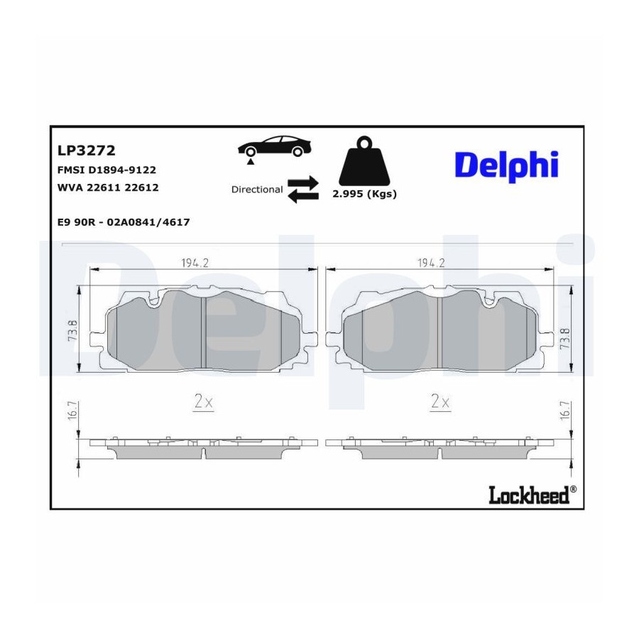 Brake Pad Set, disc brake LP3272 Delphi