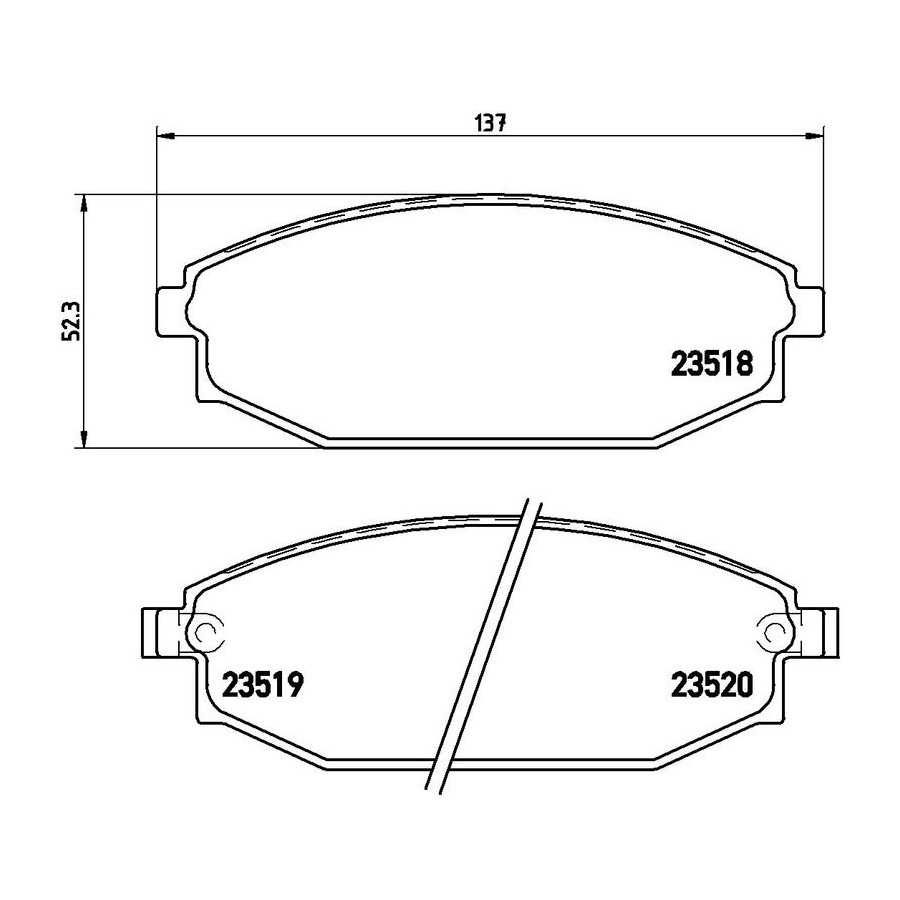 braking System SUMITOMO Wear Warning Contact With acoustic wear warning Content Set (4 brake pads per axle) Supplementary Article/Info 2 With anti-squeak plate Supplementary Article/Supplementary Info Without accessories WVA Number 23518 23519 23520 Guarantee 2 years Height [mm] 52 Width [mm] 137 Thickness [mm] 17 Number of wear indicators [per axle] 2 Similar products of other manufacturers