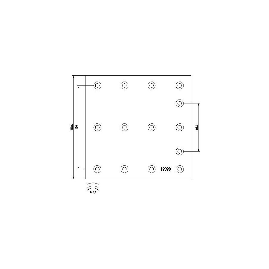 Width [mm] 173,8 Mounting Kit Without wheel brake cylinder Thickness [mm] 18 Drum diameter [mm] 410 Brake Pad With crescent lining Standard Size braking System Z-cam Quality T088 Part number of recommended accessories 88000801 WVA Number 19090 Guarantee 2 years Rivet quantity per lining kit 112 Packaging Shrink Wrap Packaging Number of slotted holes 14 Inner bend length [mm] 177 Similar products of other manufacturers