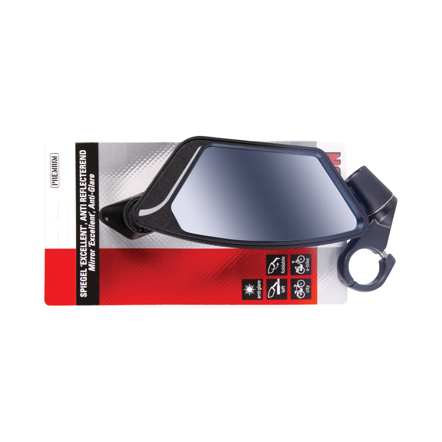 The Simson Mirror Excellent Anti Reflective is a very strong mirror for the demanding e-bike user, but looks good on any bike due to its modern look. The lens of the Simson Mirror Excellent anti reflective is made of very strong safety glass and has a special anti reflective blue coating so that there is always good visibility in the mirror even in bright sunshine. The arm is made of fiber reinforced nylon and the handlebar clamp is made of aluminum. This makes the Simson Mirror Excellent very light in weight and at the same time very strong and durable.