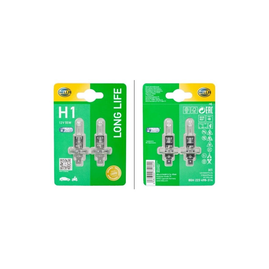 Hella Longlife H1, 12V55W (2 pieces)