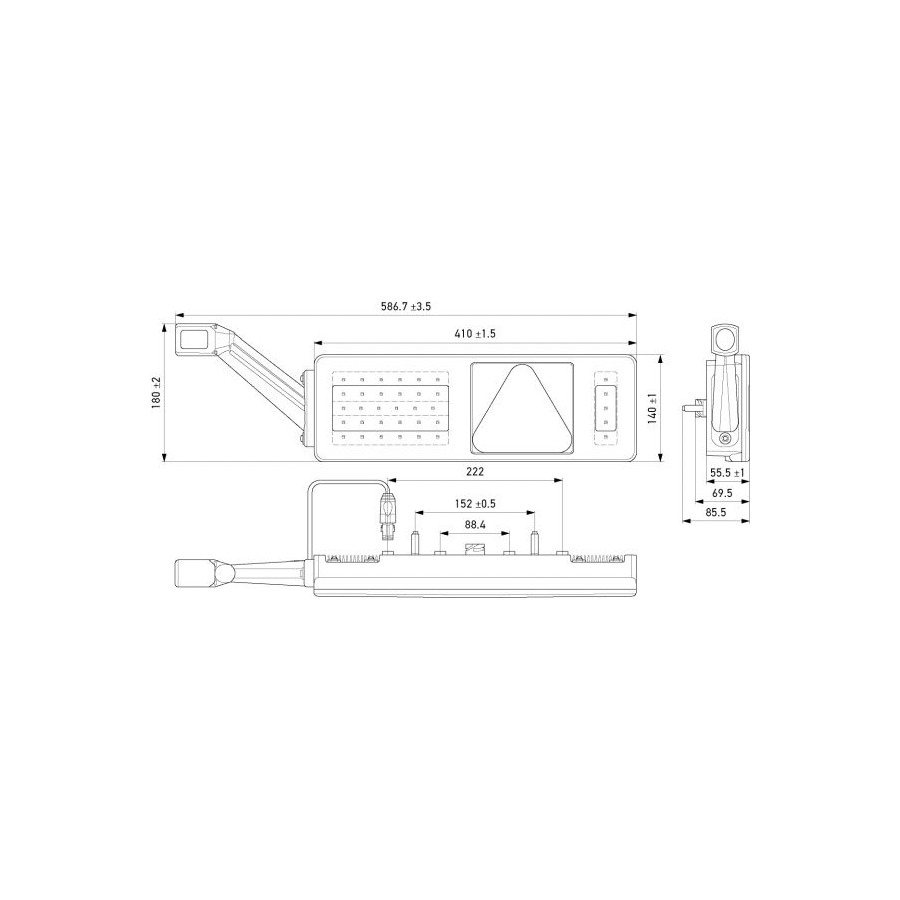 | Light Function | With flashing light (LED) | With optical erasing effect | With brake light (LED) | With reversing light (LED) | With round beam (triangular) | With contour light (LED) | With rear fog light (LED) | With tail light (LED) |