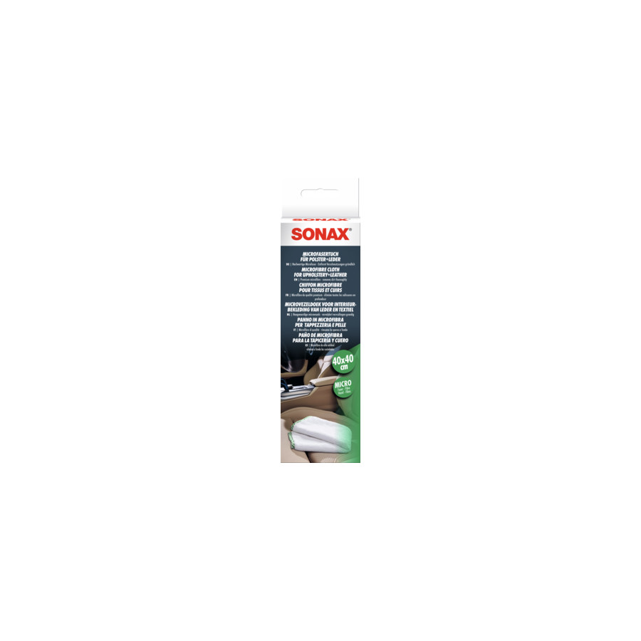 High-quality, soft microfiber cloth for cleaning upholstery, textiles, and leather surfaces. Thoroughly removes dirt without leaving lint. The perfect complement to SONAX cleaners for interiors, upholstery, and leather surfaces: Thoroughly absorbs residual dirt and ensures excellent cleaning. Washable.