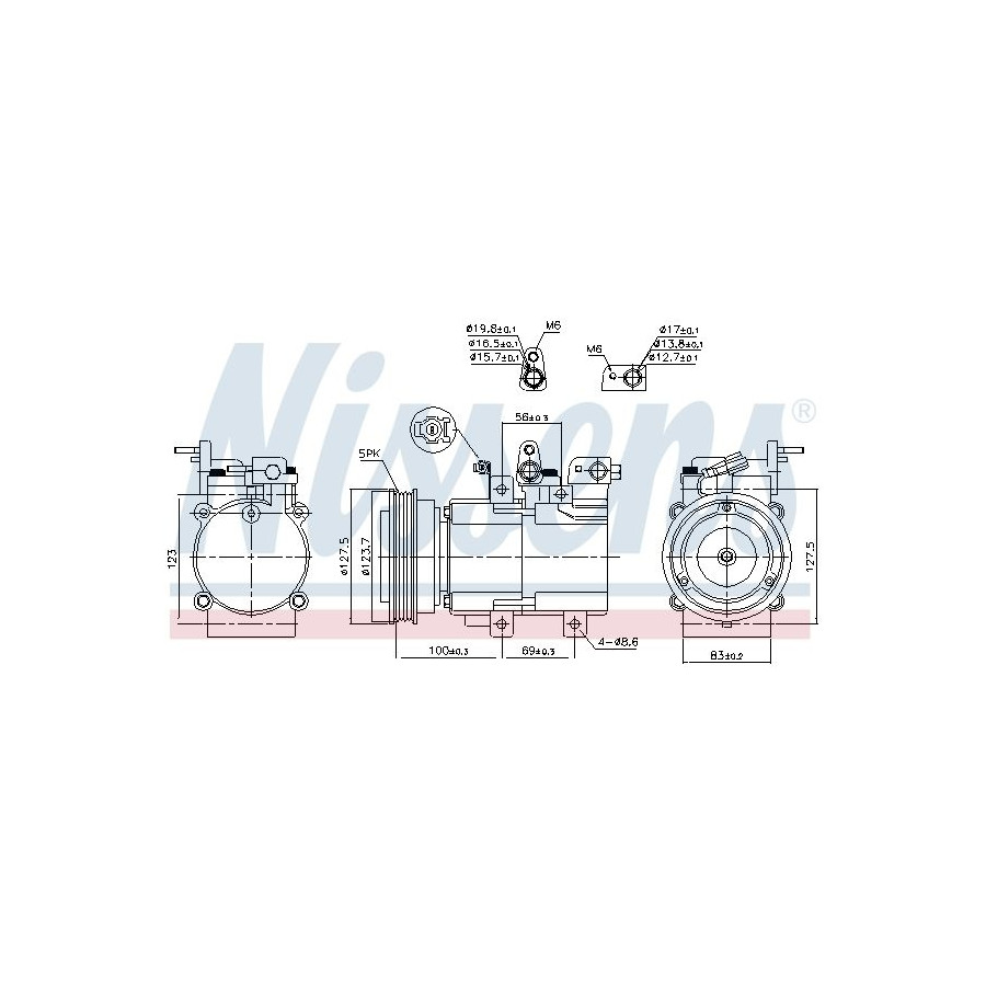 application Air conditioning pump Supplementary Article/Info 2 With PAG compressor oil Voltage [V] 12 Belt Pulley Ø [mm] 124 Refrigerant R 134a Compressor ID HS17/FS10 Number of grooves 5 Capacity Compressor [cc] 170 Oil Fill Quantity [ml] 180 Connector Shape Oval Plug Type Male Guarantee 2 years Number of contacts 1 Compressor oil PAG 46 Exhaust diameter [mm] 15,7 Output diameter [mm] 12,7 Similar products of other manufacturers