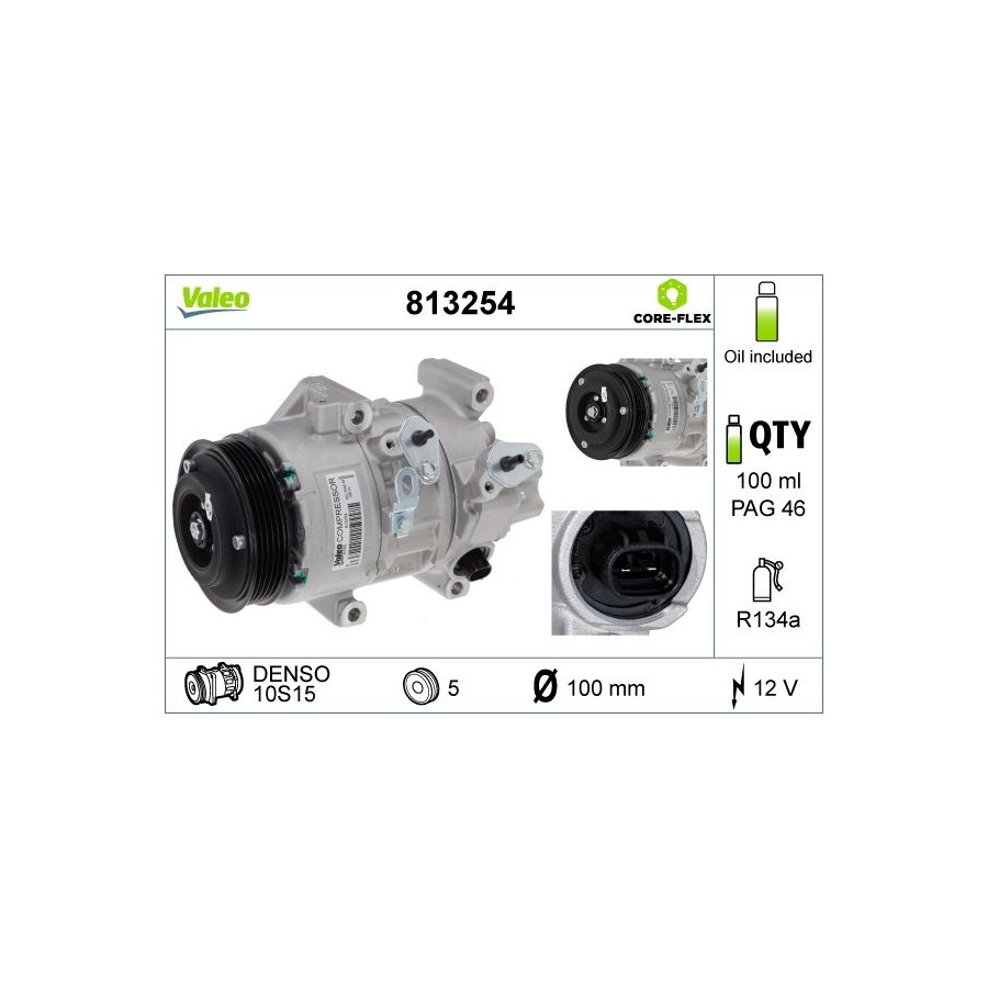 application Air conditioning pump Supplementary Article/Info 2 With PAG compressor oil Voltage [V] 12 Manufacturer Restriction Denso Belt Pulley Ø [mm] 100 Refrigerant R 134a New Part Compressor ID 10S15 Number of grooves 5 Capacity Compressor [cc] 123 Oil Fill Quantity [ml] 100 Guarantee 2 years Weight [kg] 4,95 Compressor oil PAG 46 Replacement part without deposit Similar products of other manufacturers