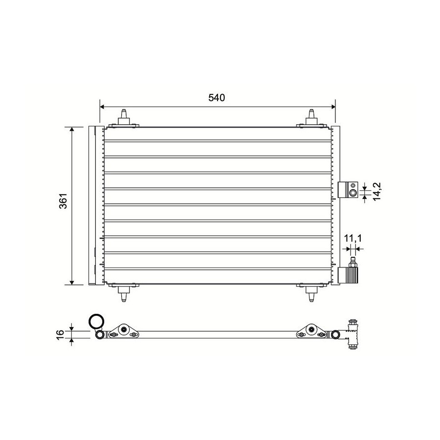 Material Aluminium Supplementary Article/Info 2 Without dryer Refrigerant R 134a Guarantee 2 years Core Length [mm] 560 Core Width [mm] 362 Core Depth [mm] 16 Weight [kg] 3,88 Similar products of other manufacturers