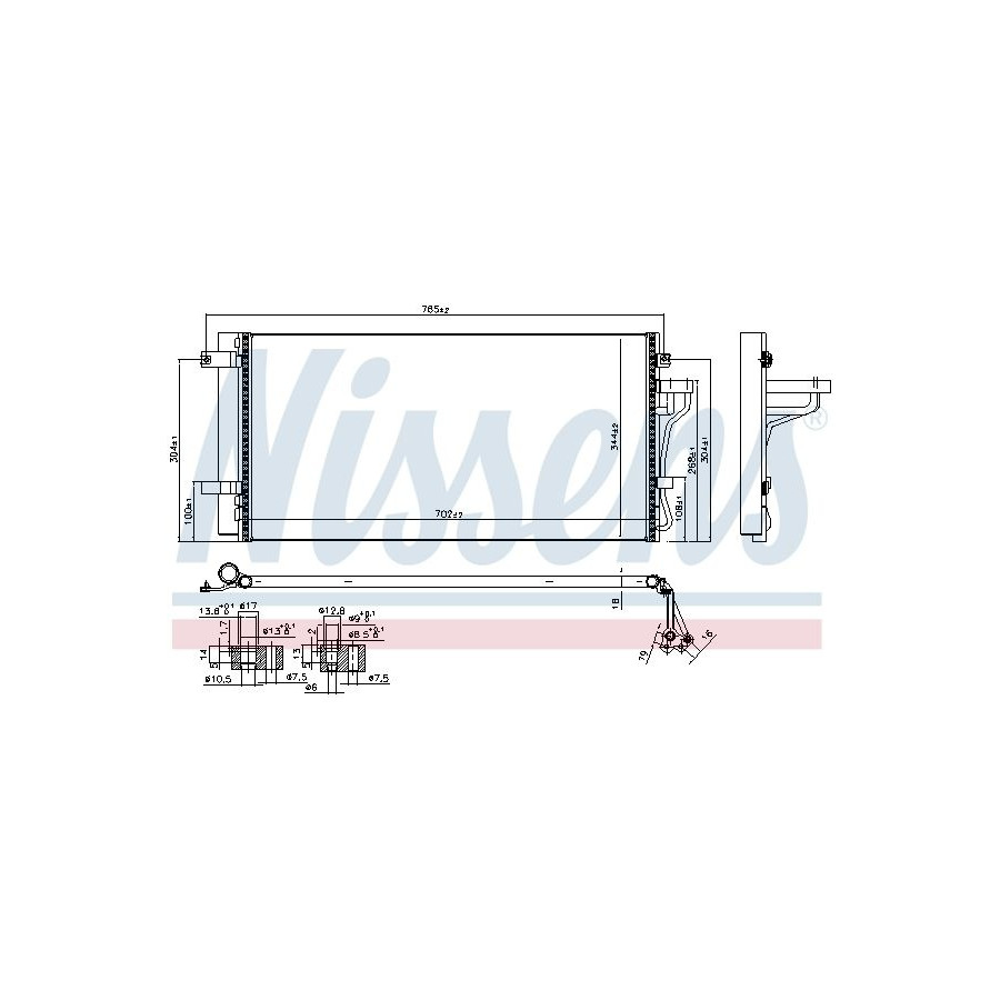 Material Aluminium Supplementary Article/Info 2 With dryer Supplementary Article/Supplementary Info With nitrogen filling Chemical Properties Corrosion resistant Refrigerant R 134a R 1234yf Guarantee 2 years Core Length [mm] 703 Core Width [mm] 340 Core Depth [mm] 18 Exhaust diameter [mm] 14,2 Output diameter [mm] 9,5 Similar products of other manufacturers
