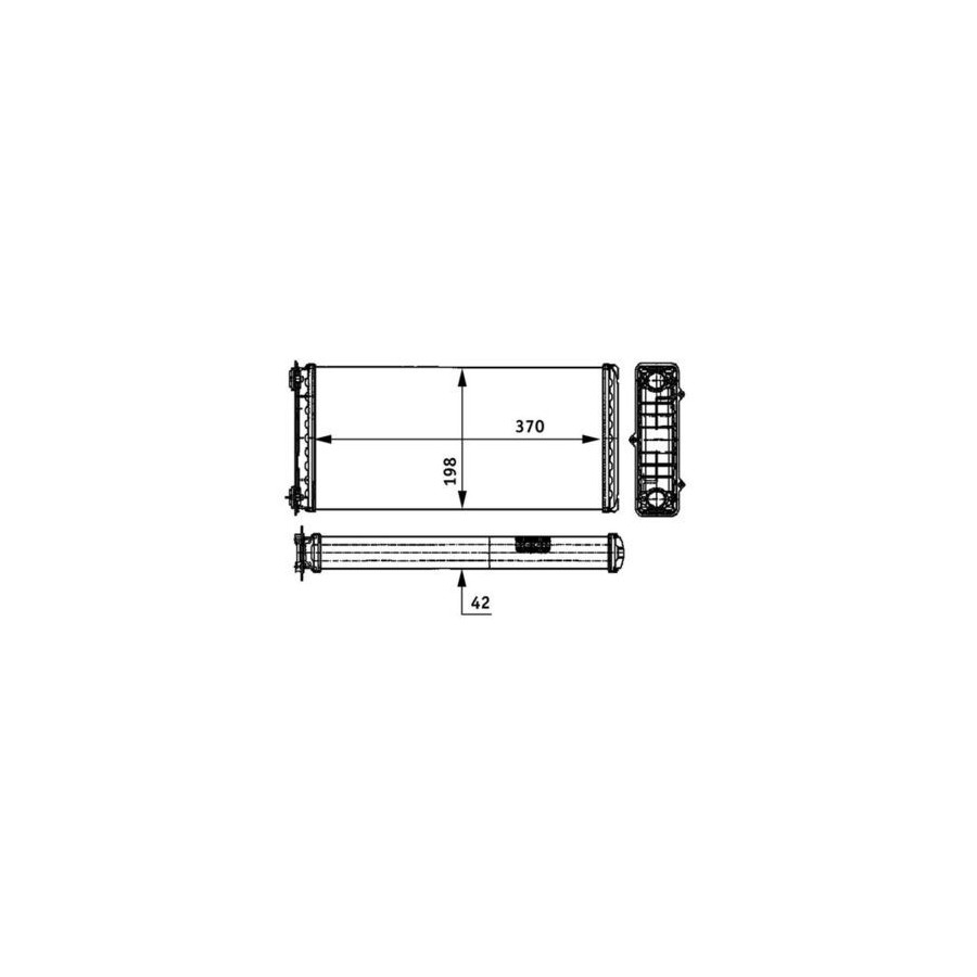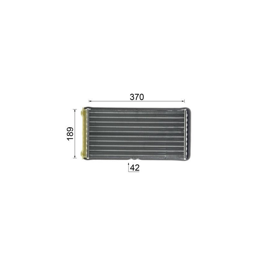 Packaging length [cm] 48,0 Packaging width [cm] 23,50 Packaging height [cm] 21,50 Guarantee 2 years Radiator type Soldered cooling fins Cooling Fins Material Aluminium Material tank (radiator) Plastic manufacturer Mahle Core Length [mm] 370 Core Width [mm] 189 Core Depth [mm] 42 Net Weight [g] 1113 Similar products of other manufacturers