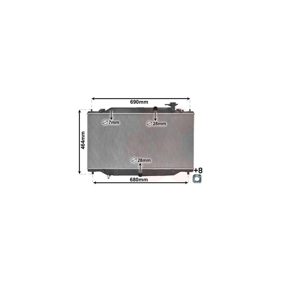 Type Radiator Core Length [mm] 375 Core Width [mm] 741 Guarantee 2 years Cooling Fins Material Aluminium Material tank (radiator) Plastic Core Depth [mm] 27 Similar products of other manufacturers