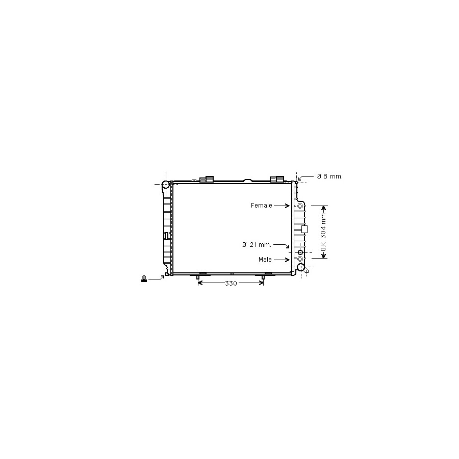 aircon +/- A / C Transmission MT / AT Core Length [mm] 640 Core Width [mm] 490 Guarantee 2 years Radiator type Soldered cooling fins Cooling Fins Material Aluminium Material tank (radiator) Plastic Core Depth [mm] 32 Pipe Diameter from [mm] 8 Pipe diameter [mm] 21 Input diameter 1 [mm] 38 Output diameter 1 [mm] 38 Similar products of other manufacturers