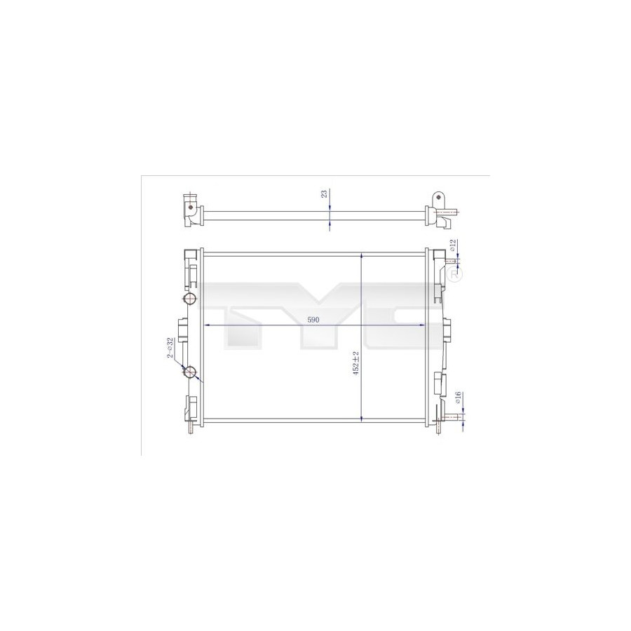 driving Manual transmission Core Length [mm] 590 Core Width [mm] 452 Inlet Ø [mm] 32 Outlet Ø [mm] 32 Guarantee 2 years Radiator type Mechanically jointed cooling fins Core Depth [mm] 23 -