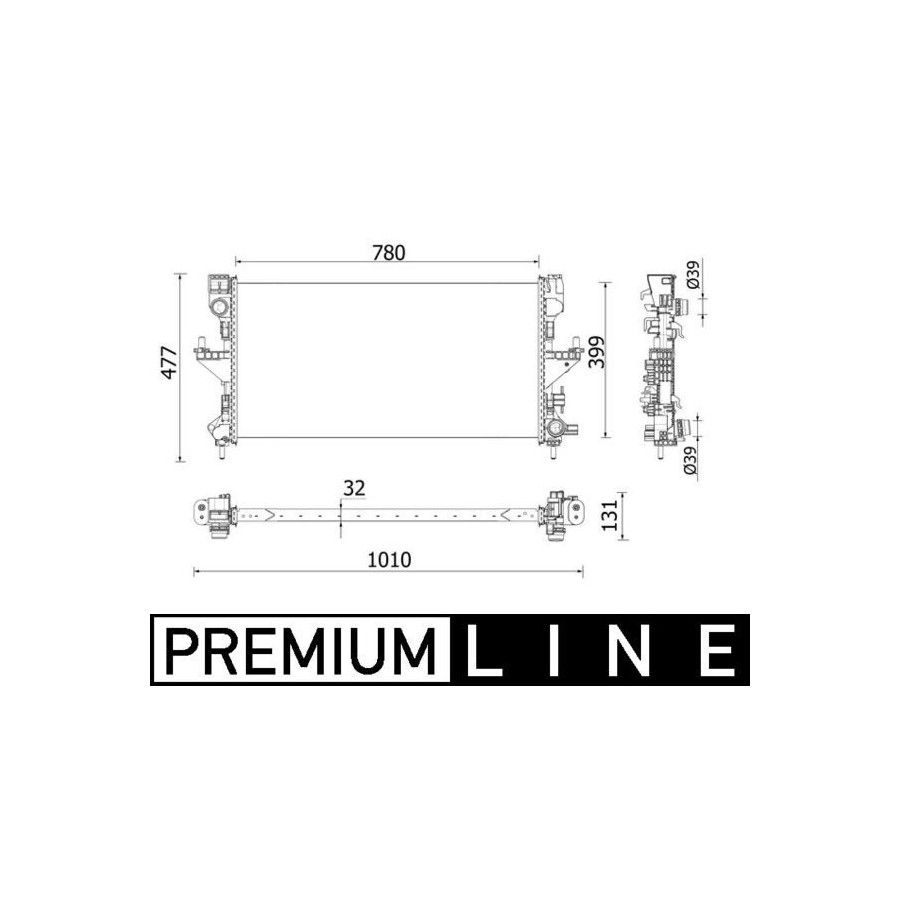 Core Length [mm] 780 Core Width [mm] 399 for OE number 1382422080 1391496080 Packaging length [cm] 104,2 Packaging width [cm] 15,70 Packaging height [cm] 51,20 Guarantee 2 years Radiator type Soldered cooling fins Material tank (radiator) Plastic manufacturer Produced by MAHLE Core Depth [mm] 32 Net Weight [g] 2906 Similar products of other manufacturers