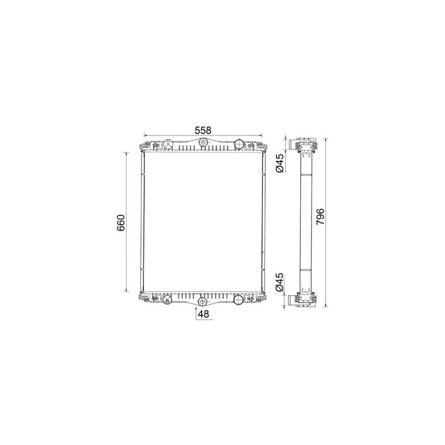 Type Radiator Core Length [mm] 660 Core Width [mm] 558 Supplementary Article/Info 2 Without frame Packaging length [cm] 89,5 Packaging width [cm] 80,00 Packaging height [cm] 19,50 Guarantee 2 years Radiator type Soldered cooling fins Cooling Fins Material Aluminium Material tank (radiator) Plastic Core Depth [mm] 54 Net Weight [g] 14000 Diameter 1 (mm) 45 Diameter 2 (mm) 45 Similar products of other manufacturers