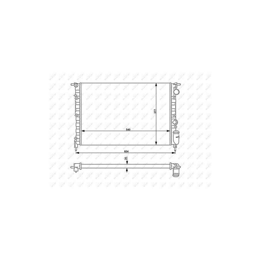 Type Radiator Core Length [mm] 540 Core Width [mm] 377 Material Aluminium Guarantee 2 years Radiator type Mechanically jointed cooling fins Core Depth [mm] 30 Similar products of other manufacturers