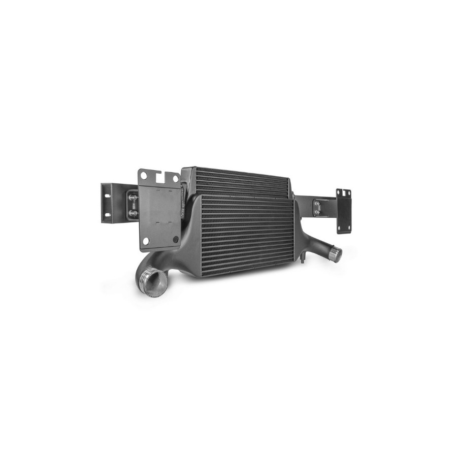 The high-performance intercooler has the following dimensions (515 mm x 367 mm x 95 mm [stepped] = 16,500 cm³) and thus offers an 84% larger flow area and 101% more intercooler volume compared to the original intercooler. The newly developed competition-quality grille ensures sufficient airflow to adjacent components, such as the water cooler. This is a high-quality tube-fin grille with internal turbulators. The intercooler end casings are made of cast aluminum and have been optimized using flow analyses in a CFD system. Integrated air guides in the inlet ensure even charging of the intercooler. The result is excellent cooling properties with minimal back pressure. This kit is therefore suitable for racing. In addition, all our intercoolers have an anti-corrosion coating with heat-conducting properties. This guarantees lasting and optimal cooling with a significant increase in performance. The intercooler and the original crossmember form a stable unit and, thanks to the new Competition-grade mesh, weigh only 11.7 kg. Installation is done using the original mounting points and is easy to perform (see the installation manual for simple modifications). Tested to 6 bar and pressure-resistant.