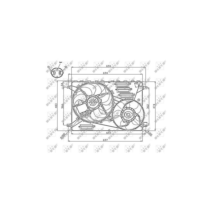 Supplementary Article/Info 2 With radiator fan shroud Voltage [V] 12 Supplementary Article/Supplementary Info With control unit Heating / Cooling Double Fan Number of Fan Blades 8 Connector Shape Oval Rotation Direction Clockwise rotation Guarantee 2 years Diameter 1 (mm) 388 Diameter 2 (mm) 300 Number of contacts 3 Rated power [W] 350 Similar products of other manufacturers