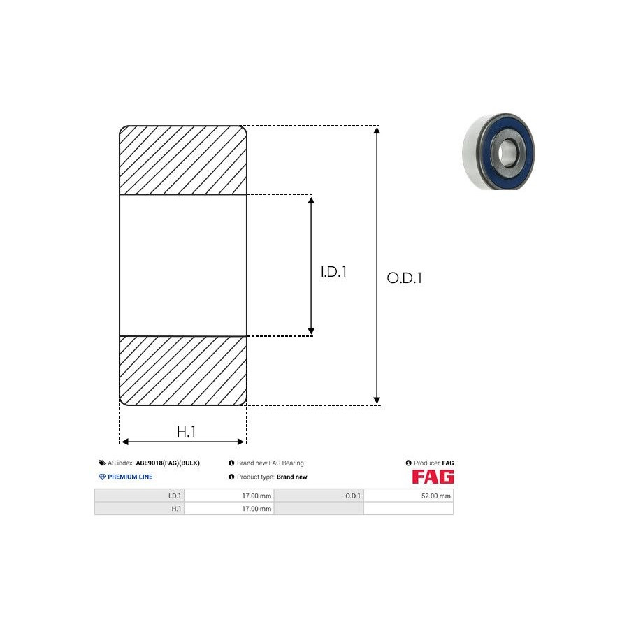 Outer diameter [mm] 52,00 Inner diameter [mm] 17,00 Quality PREMIUM LINE Guarantee 2 years Height [mm] 17,00 New part without deposit -