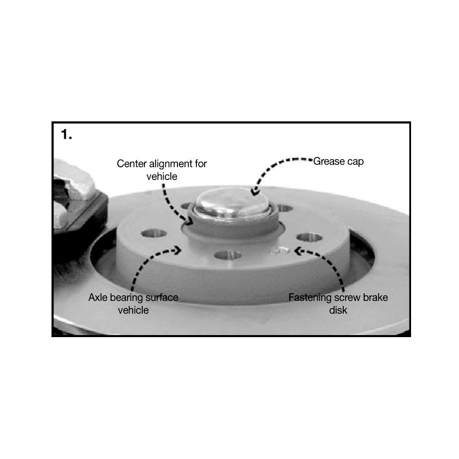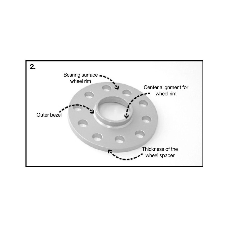 The track spacer must be mounted between the wheel and the axial hub using longer wheel bolts (order separately). When ordering the longer wheel bolts, please specify which bolt type you need and the required additional length.