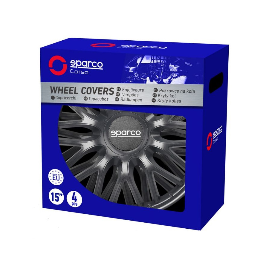 Sparco wheel covers quickly enhance the look of your car. Attractively priced, high-quality, and available in 13, 14, 15, and 16 inches. Sparco wheel covers come in a set of four and are available in various colors.